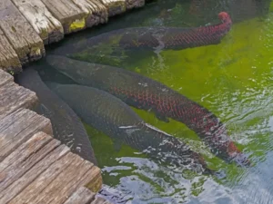 After 30 minutes on the Amazon, the next stop is with the Yahua ethnic group, whose ancestors were first seen by Francisco de Orellana in 1541. The visit allows travelers to discover their customs, palm fiber clothing, and the use of the blowgun, or pucuna, traditional in hunting. Then the tour continues to Fundo Pedrito to observe the Amazonian paiche (Arapaima gigas), one of the largest freshwater fish in the world. Visitors can also see white caimans, piranhas, and the Victoria Regia, recognized as the largest aquatic plant in the world.