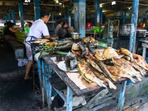 At 7:00 a.m. the tour begins at Belén Market and the floating neighborhood, a place that showcases daily life in the Amazon. The route passes through García Sáenz and Ramírez Hurtado streets, where natural products such as chonta, açaí, aguaje, and guaraná can be found. Then it continues to the spice and seasoning area, with turmeric, annatto, and ginger; further ahead, Paquito Passage gathers herbalists offering medicinal plants such as jergón sacha, garlic sacha, cat’s claw, and ayahuasca. The visit also includes the fish area, with a variety of species from the Amazon River. The route introduces traditional gastronomy: grilled caiman, juanes with tacacho, cecina, and suris, considered local delicacies. Afterwards, a 15-minute canoe ride along the Itaya River takes you to the floating neighborhood of Belén. From there, the journey continues to the Bellavista Nanay embarkation point, ideal for travelers wishing to connect with local culture during this Amazon tour in Iquitos.